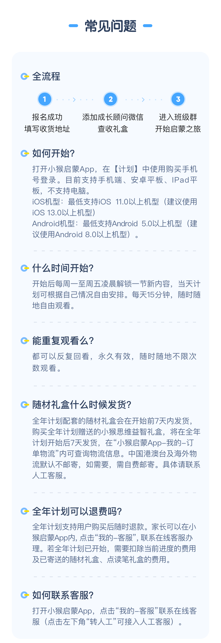 成功购买全年计划后,请及时下载【小猴启蒙App】,查看开始时间及体验内容,购买手机号即为登录账号。